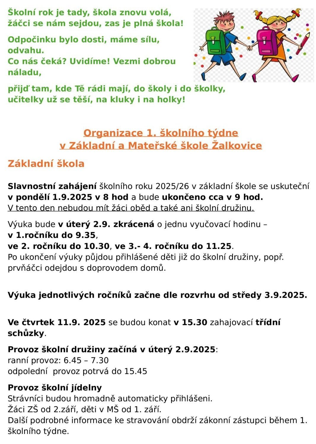 ZŠ a MŠ Žalkovice je neúplnou malotřídní školou rodinného typu, která poskytuje základní vzdělávání žákům v 1. – 4. ročníku.