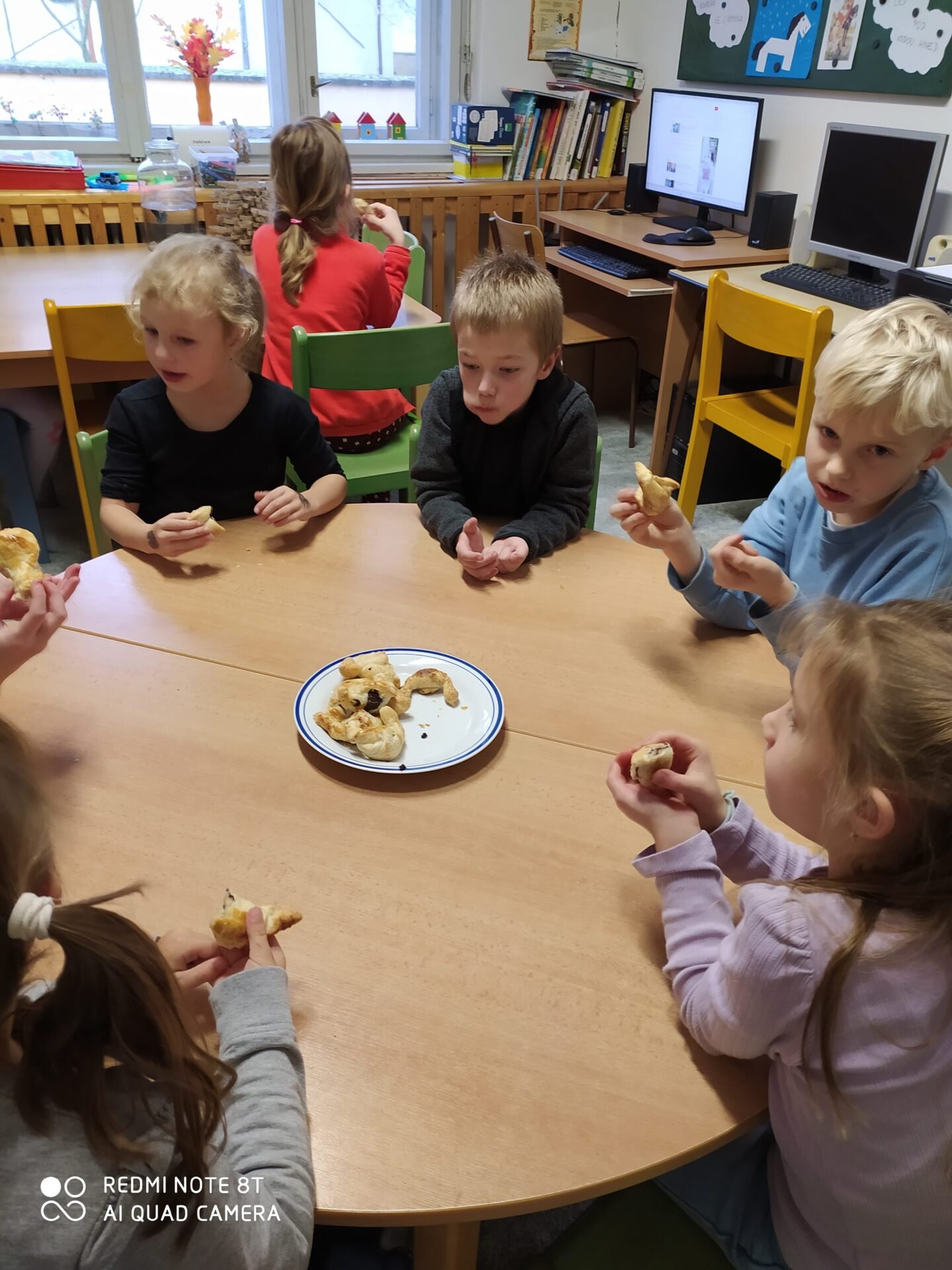 Pečení svatomartinských rohlíčků ve školní družině Na svatého Martina kouřívá se z komína. Na svatého Martina, peče celá školní družina. A co peče? Svatomartinské rohlíčky vytuněné čokoládovou náplní, které se dětem moc povedly a moc chutnaly. Tak jsme v družině oslavili svátek Martina, který i tentokrát nepřijel na bílém koni, ale nám to při povídání o zvycích a tradicích svátku svatého Martina nevadilo, protože jsme si koníka nakreslili a upekli rohlíčky. Akorát nám ta husa ještě chyběla! 🙂 Bc. Leona Krčmová, vychovatelka
