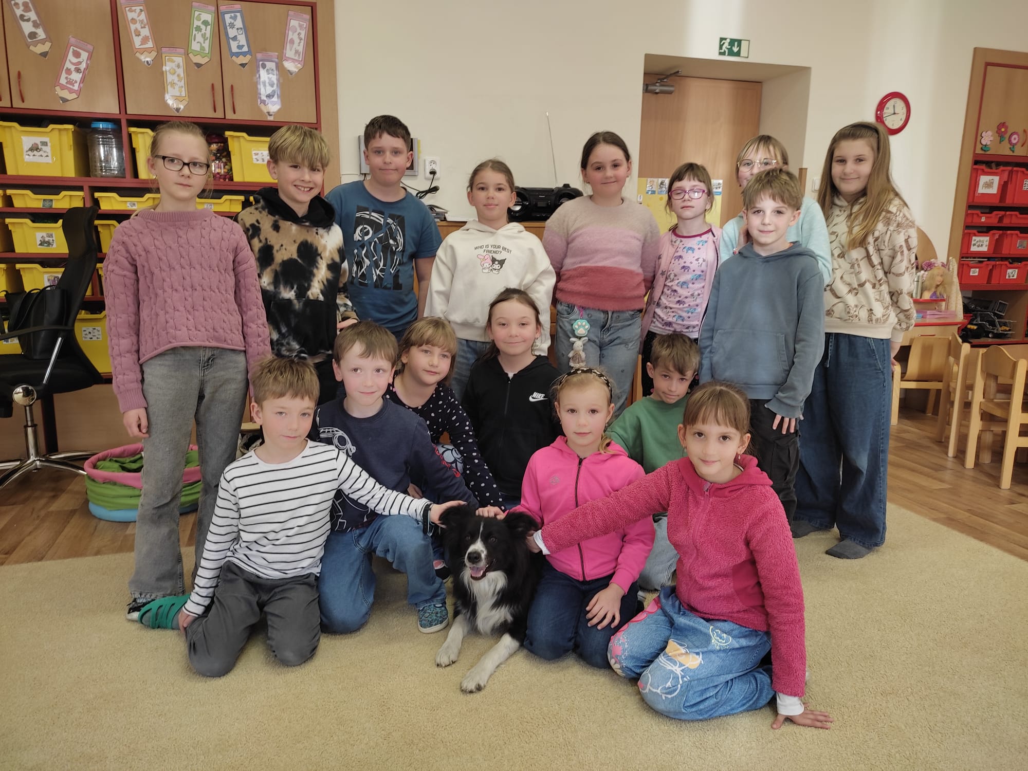 Do naší školy v úterý 10.3. zavítala milá návštěva – fenka Bailey se svou trenérkou Andreou Šťastnou, která je zároveň canisinstruktor, psovod a záchranář. Dětem přišla představit canisterapii a ukázat, jak může pes pomáhat lidem a přinášet jim radost. Na začátku nám paní trenérka vysvětlila, co vlastně canisterapie znamená. Povídali jsme si o tom, jak speciálně vycvičení psi pomáhají dětem, seniorům nebo lidem, kteří potřebují podporu a povzbuzení. Děti se také dozvěděly, jak se ke psům správně chovat a proč je důležité být k nim ohleduplný. Fenku Bailey nám paní trenérka předvedla při různých tricích a povelech. Bailey ukázala, jak umí poslouchat, podávat pac, lehnout si nebo reagovat na různé pokyny. Děti byly nadšené a pejska si se zájmem prohlížely. Největší radost měly děti z toho, že si mohly jeden z povelů samy vyzkoušet. Bailey je ochotně poslouchala a všem vykouzlila úsměv na tváři. Setkání bylo velmi příjemné a děti si z něj odnesly nejen krásný zážitek, ale také nové poznatky o tom, jak mohou psi pomáhat lidem. Mgr. Veronika Lejsková