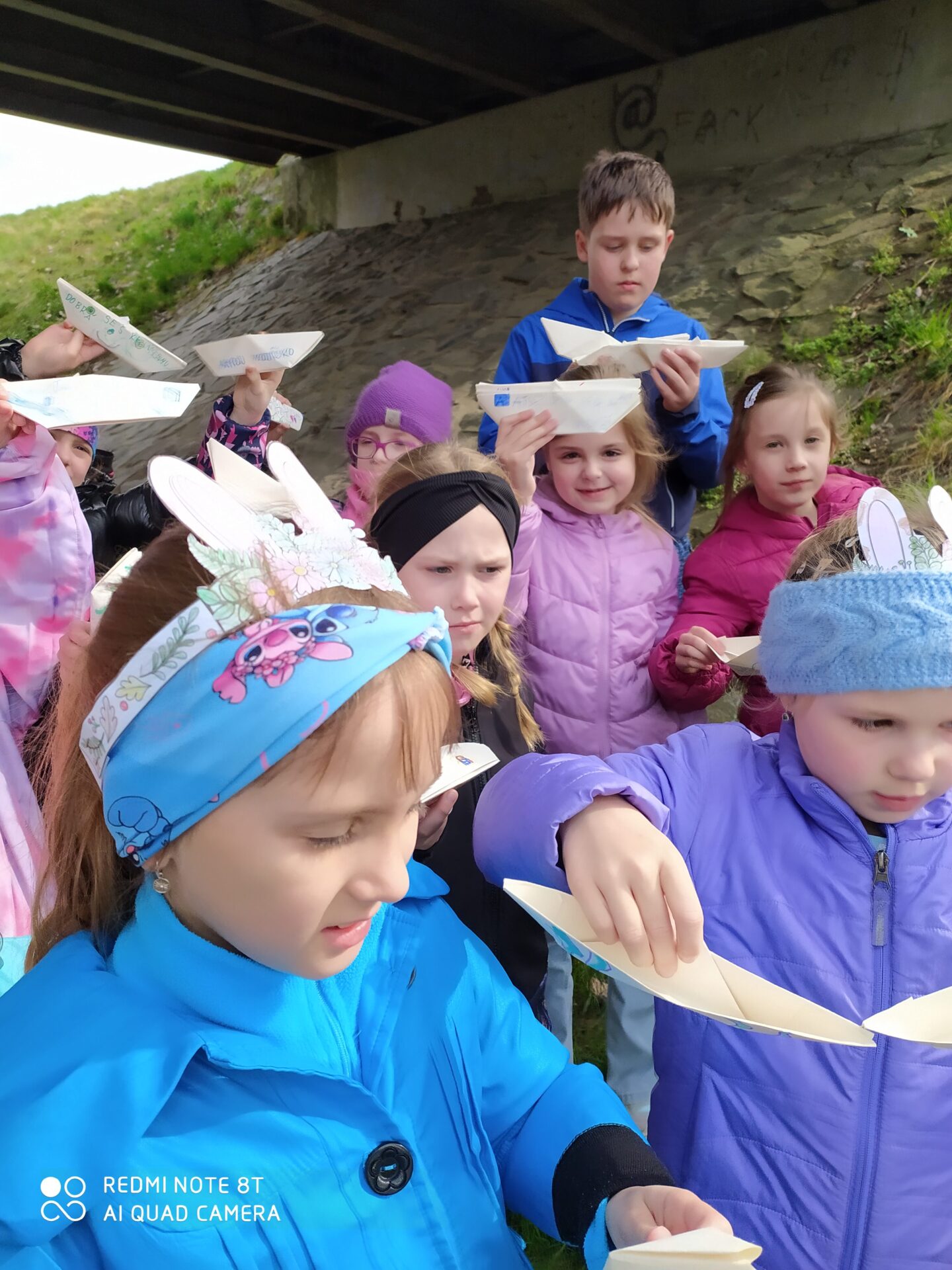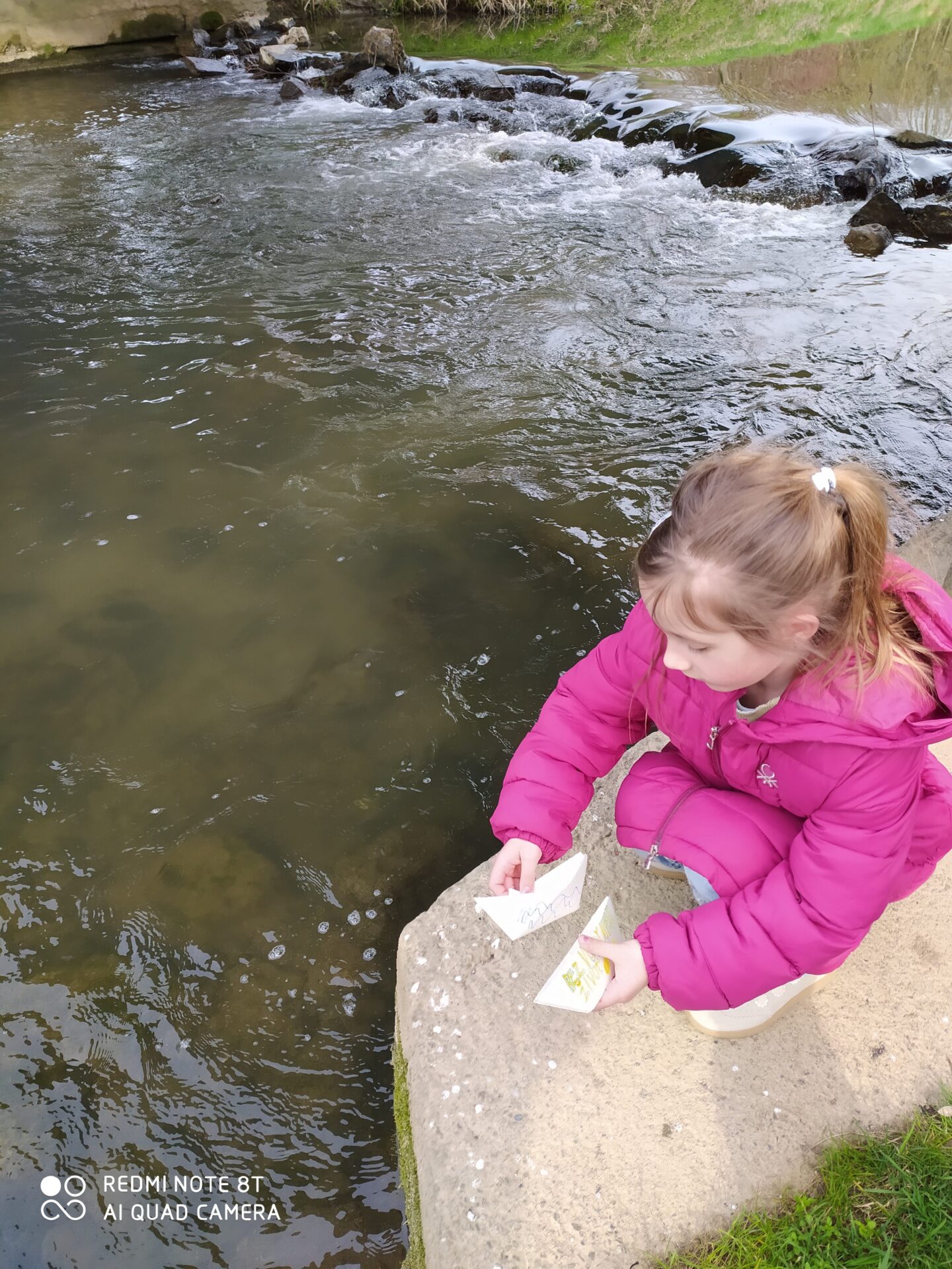 Naši Moštěnku jsme šli pozdravit vzkazem a přáním všeho nejlepšího na papírových lodičkách, které děti poskládaly a vyzdobily. Popřály vodě to nejlepší, ať je čistá, ať v ní plave mnoho ryb a ať se jí daří!